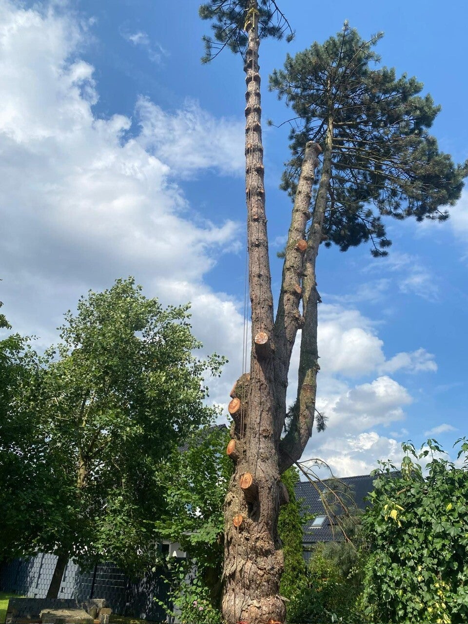 Baumfällungen aller Art – auch Spezial- und Kranfällungen. Sichere Arbeiten auf engstem Raum durch Seilklettertechnik, Hubarbeitsbühne oder Rigging (kontrolliertes Abtragen und Abseilen von Baumteilen).